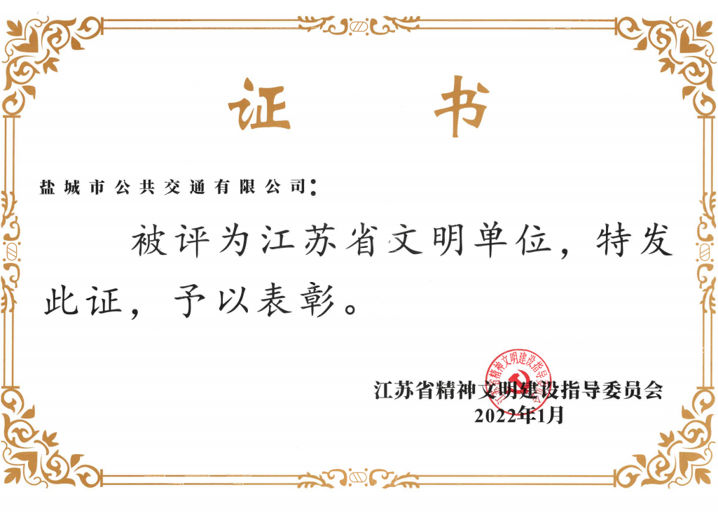 • 2022年4月公司被授予2021年度鹽城市文明創(chuàng)建工作先進(jìn)集體榮譽(yù)稱號(hào)